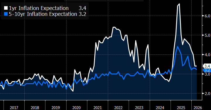 Univ. of Michigan Sentiment – Inflation Expectations Forecast to Move Higher