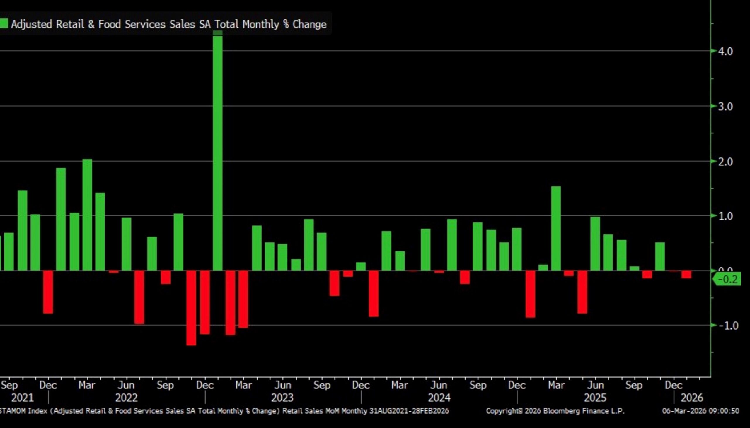 - Thus, a somewhat shaky performance by the consumer to start 2026, albeit a bit better than December. The more comprehensive, and inflation adjusted, Personal Income and Spending Report for January will be released March 13, so look for this more complete read on the consumer. The December report confirmed the retail sales weakness so we’ll see if that was the case in February too.