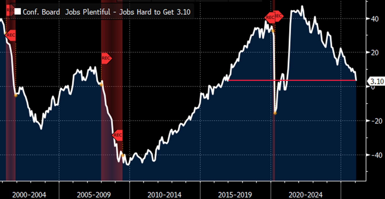 January Conference Board Labor Differential (Jobs Plentiful – Jobs Hard to Get) Hits Five-Year Low