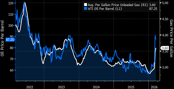 - That upward drift in long-run inflation expectations will be a concern for the inflation hawks at the Fed. That anxiety will only be amplified by the war impact as sharply higher oil prices recall the ‘70’s period of unanchored, spiraling inflation expectations. While this episode shouldn’t be a full repeat of that experience, the slight drift higher in expectations into what should be another dose of coming cost pressure will not sit well with the inflation-focused contingent. Thus, next week’s FOMC meeting will give them centerstage to express those concerns.