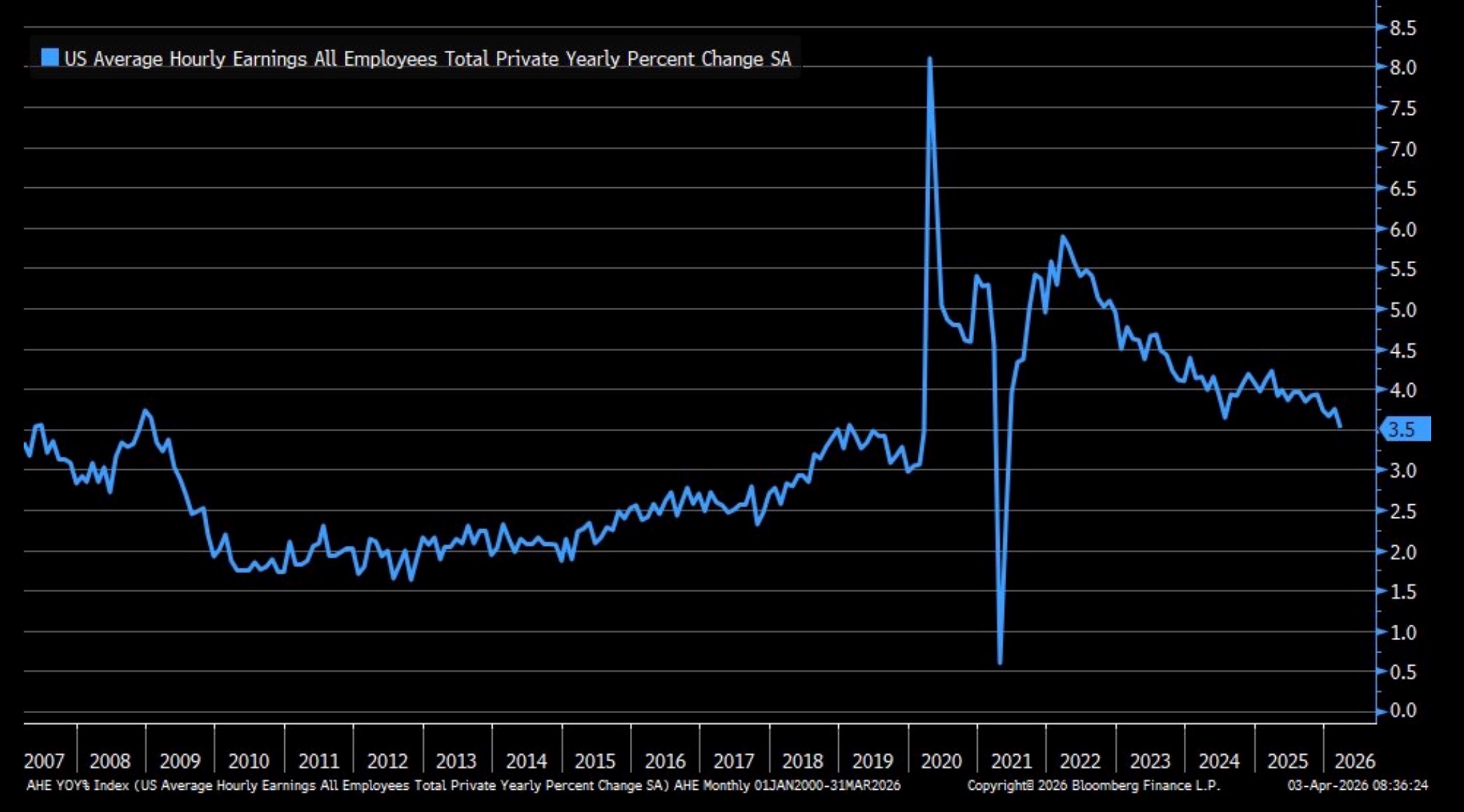- Bottom line: with a Good Friday release this report was greeted by a smaller-than-usual audience, and the fact that with a stable unemployment rate and headline gain, the Fed remain patient and wait for inflation to improve. The latest oil price spike and the ongoing supply constraints through the Strait of Hormuz, that still has an uncertain duration, will dominate the factors in trading next week. April is expected to see physical shortages manifest from the shipping blockage, first in east Asia then spreading west during the month. Thus, the inflation/growth questions will continue dominating trading this month with 2H26 policy expectations being driven by that dynamic and not today’s jobs report.
