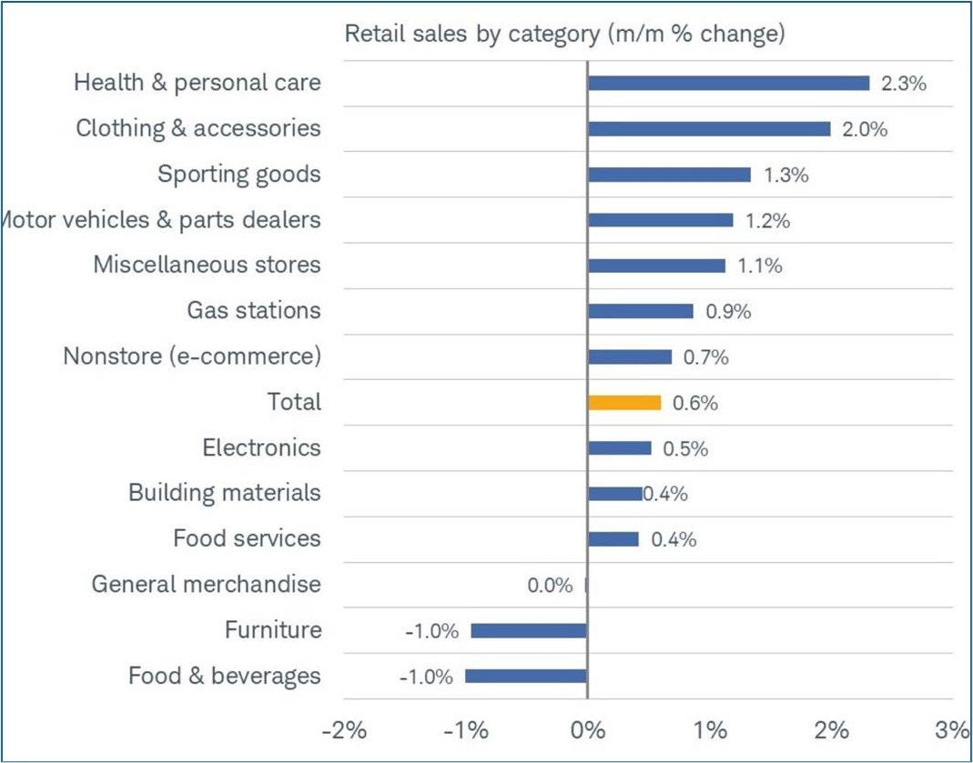 - Retail sales for February increased 0.6% for the month, offsetting a soft -0.1% contraction in January and above the 0.5% expectation. Sales ex autos were up 0.5% vs. unchanged in January and 0.3% expected. Sales ex autos and gas were up 0.4% vs. 0.3% expected and 0.2% in January. The direct feed into GDP, the so-called Control Group (sales net of autos, gas, building materials, food and drink services, and some small misc. categories), was up 0.5% vs. an expected 0.3%, and a downwardly revised 0.2% in January and matching the 0.3% expectation. The Control Group is thought to provide a “core” view of spending. Gains were heaviest in health and personal care and clothing and accessories. While February did rebound from the winter-affected January results, it will be considered somewhat stale coming before the Iran war. The other caveat we always offer is the report is presented in nominal terms (i.e., not inflation adjusted), and it’s more goods-focused than the broader and inflation-adjusted personal consumption number that comes in the Personal Income and Spending Report.