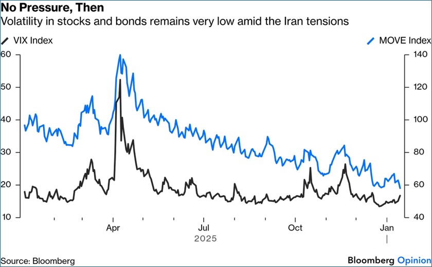 - With first-tier economic reports done for a while, and a holiday-shortened week upcoming, there’s little on the horizon that could be identified as a possible catalyst to upset the range trade we’re in. That means more emphasis on potential geopolitical events to upset the apple cart, and, if anything else, this administration knows how to engage in geopolitical machinations. The Supreme Court ruling on tariffs and the Iran protest situation are two potential sources of vol, but for now they have receded slightly from the scene. Currently, the 10yr is yielding 4.19%, up 3bps, while the 2yr is yielding 3.58%, up 1bp on the day.