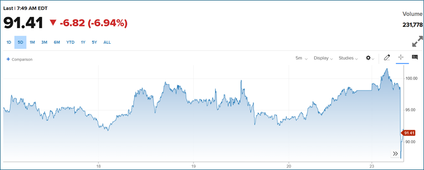 - Oil prices tumbled this morning after President Trump said the U.S. and Iran had productive talks, leading him to order a halt on strikes against key energy infrastructure in the country. West Texas Intermediate futureswere down 7% at $91 per barrel. Brent crude lost around 8% as well to trade at $104. Risk-on is the early theme of the day with Dow futures up over 700 points. This week the economic calendar is light on first-tier reports so war news will dominate headlines and trading as we’re seeing this morning. One thing we’ve learned with this administration is that headlines and events can change on short notice, so strap in! Currently, the 10yr is yielding 4.38%, down 2bps, while the 2yr is yielding 3.90%, up 1bp on the day.